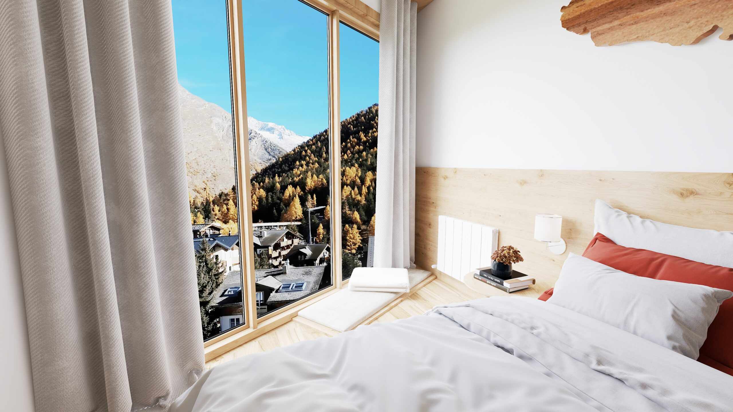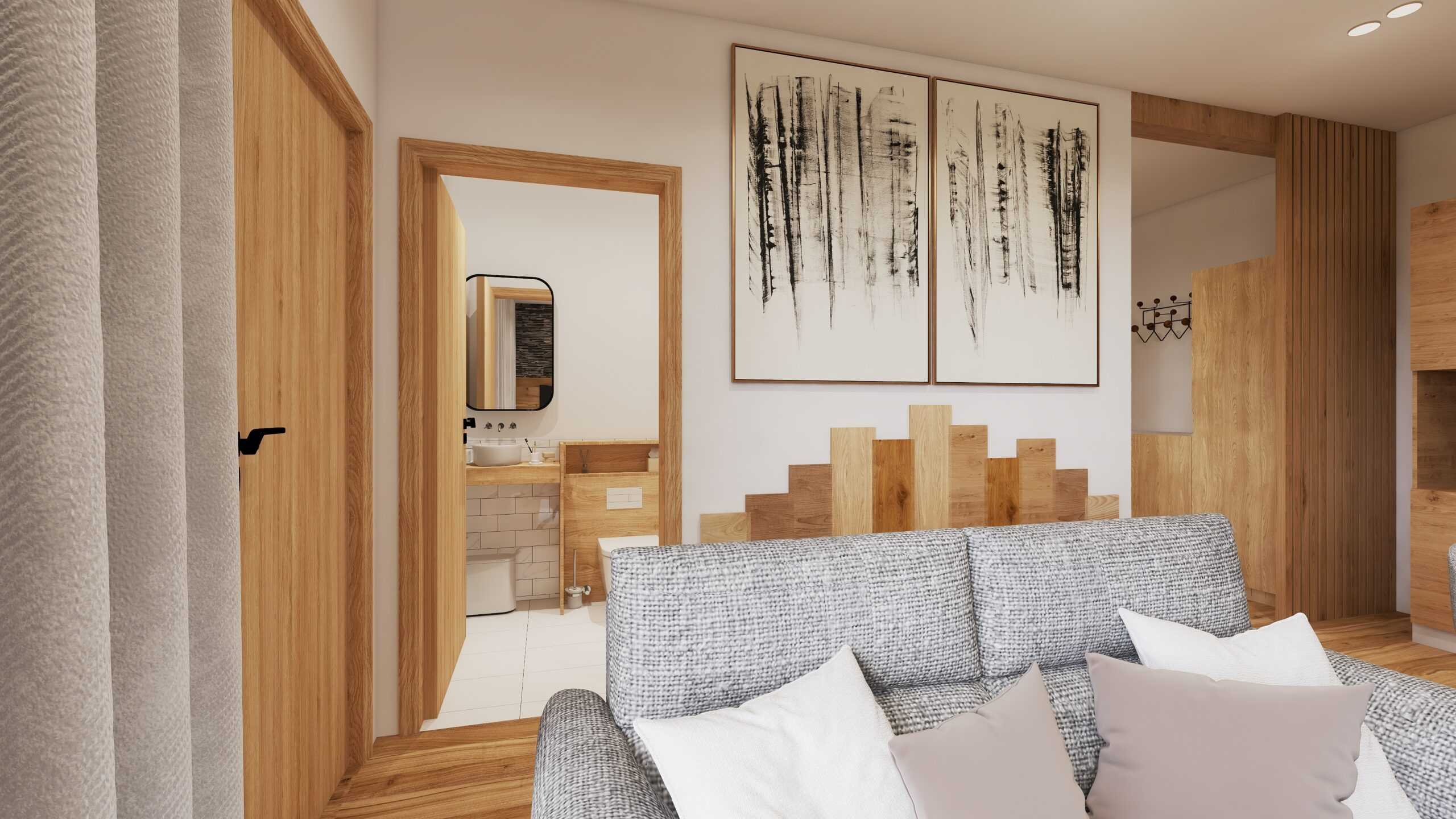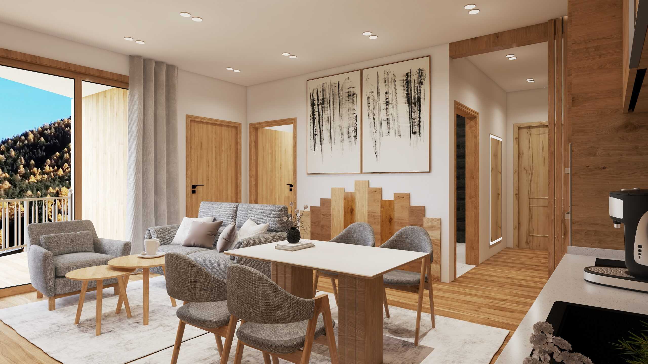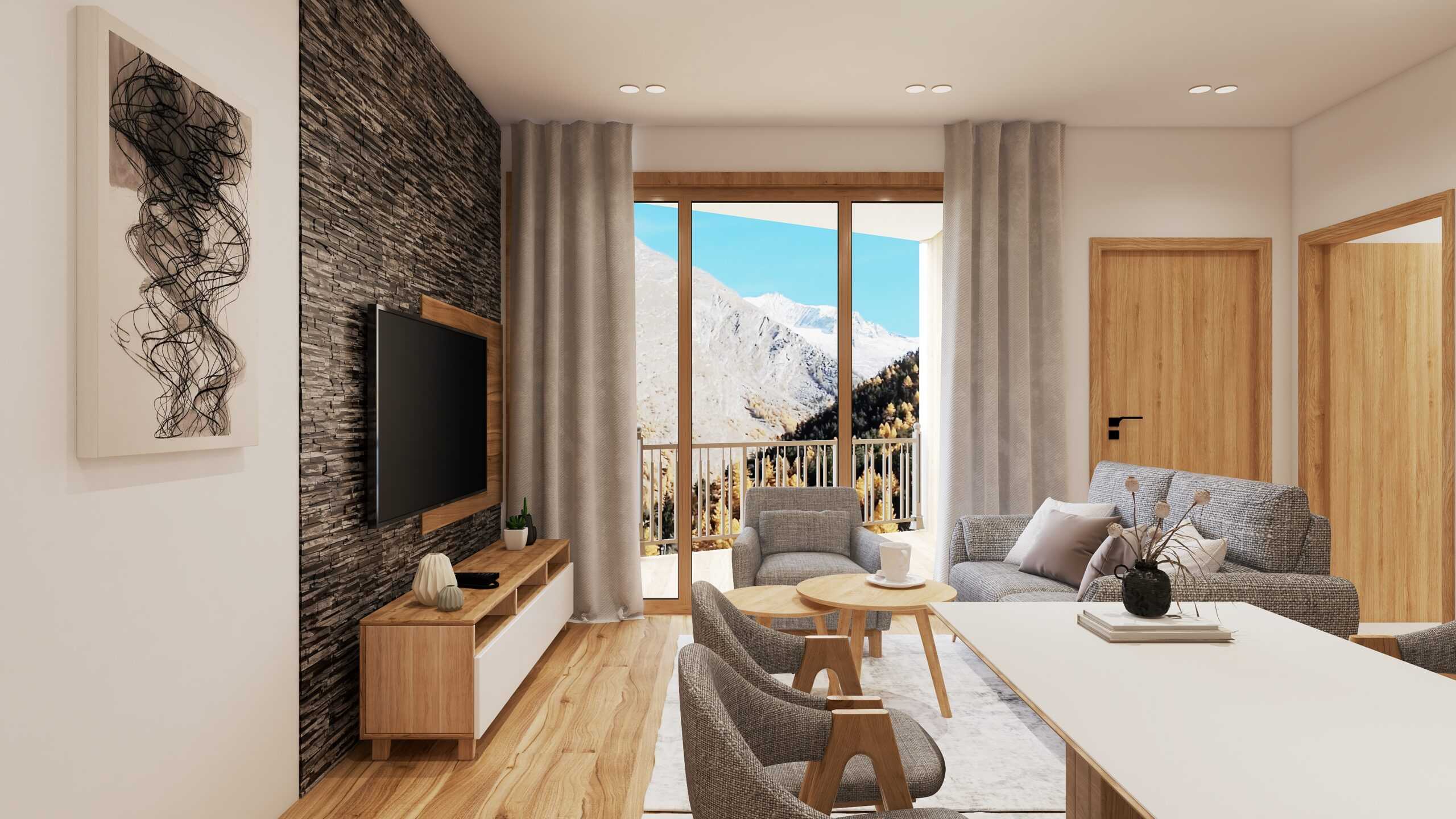 2Innen empfängt Sie ein Wohnraum, der sofort Wärme ausstrahlt: großzügig, hell, mit natürlichen Materialien, die sich sanft anfühlen und den Raum wie ein modernes Alpenchalet wirken lassen. Das Masterbedroom ist ein Ort des absoluten Rückzugs - ein Raum, in dem man nach einem Tag im Schnee fast in die Matratze sinkt. Das zweite Schlafzimmer bietet denselben Komfort: ideal für Familie, Freunde oder Gäste. Das Bad ist Ihr kleiner privater Wellness-Moment, den man ganz für sich hat. Oder Sie nutzen den großzügigen Wellness- & Spa-Bereich des Hotels, der zahlreiche Möglichkeiten zur Entspannung bietet. Im großzügigen Wohnbereich empfängt Sie ein Raum voller Wärme und Ruhe: sanftes Licht, natürliche Farben und große Fenster, die die Berge einrahmen wie ein lebendiges Gemälde. In Ihrer stilvoll integrierten Kaffeeküche genießen Sie ein gemütliches Frühstück mit frischem Brot, Obst oder Gebäck - begleitet vom Panorama, das jeden Moment in Entspannung verwandelt.