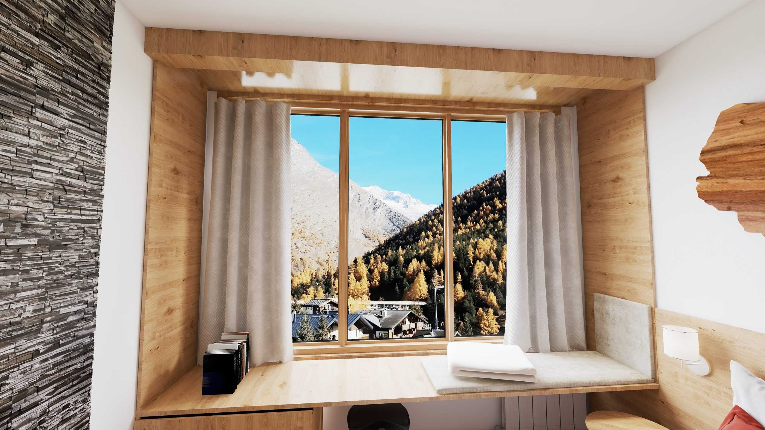Der Augenblick, in dem Sie die Tür zur Hotelsuite –204 öffnen, ist einer dieser seltenen Momente, in denen man stehen bleibt - weil sich sofort ein Gefühl von Verbundenheit und Ankommen einstellt. Dieses warme Licht, das von Osten sanft in den Raum fällt, der Blick hinaus ins Helle, die Ruhe, die sich wie ein weicher Mantel um Sie legt … schon in den ersten Sekunden spüren Sie: Hier bin ich zuhause. Die Berge färben sich in zartes Rosa, der Schnee glitzert wie bestreuter Zucker - und eine angenehme Frische mischt sich mit der warmen Behaglichkeit im Inneren. Man spürt sofort: Hier draußen beginnt der Tag anders. Klarer. Reiner. Wie ein tiefes Einatmen nach langer Zeit.