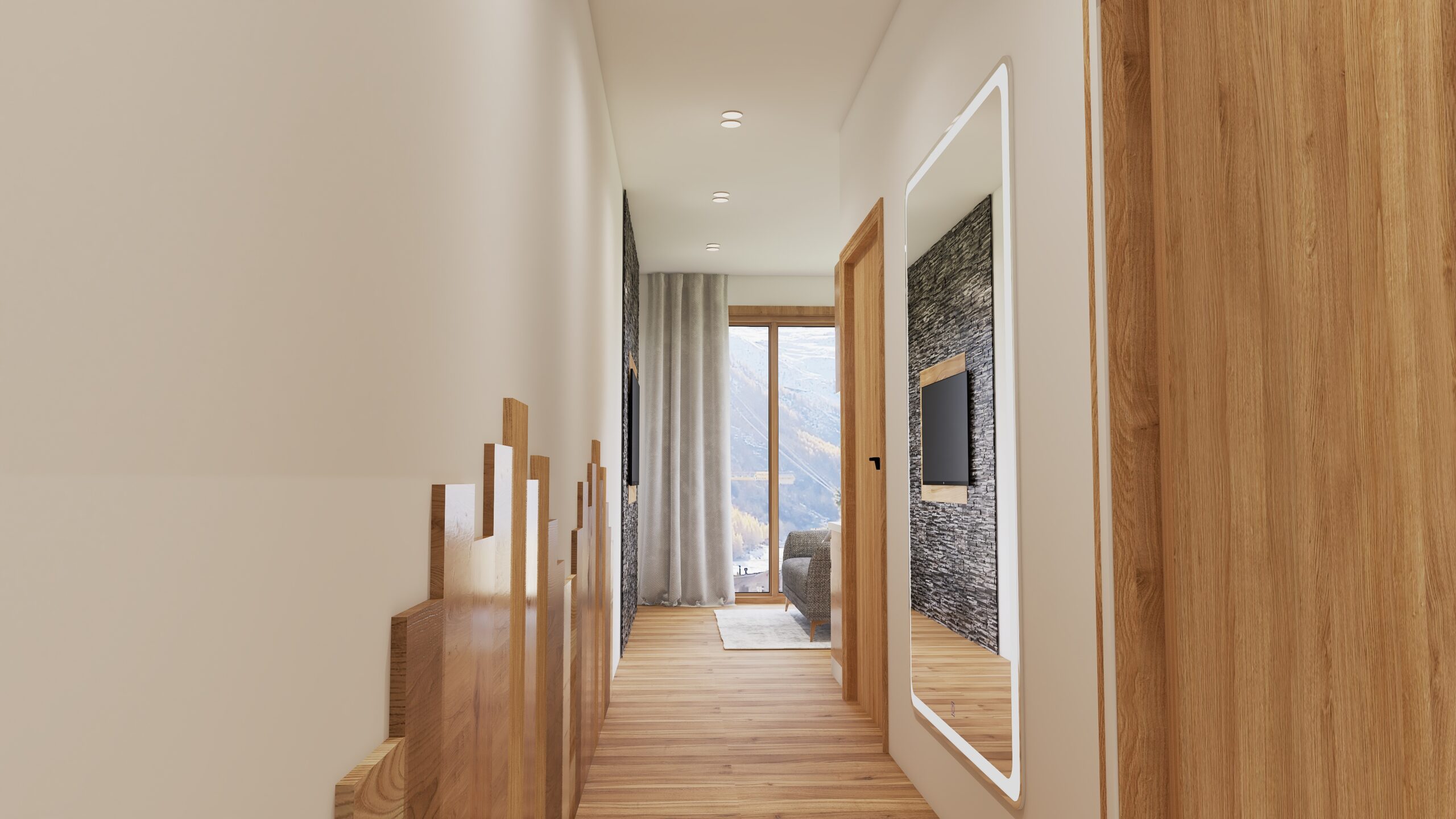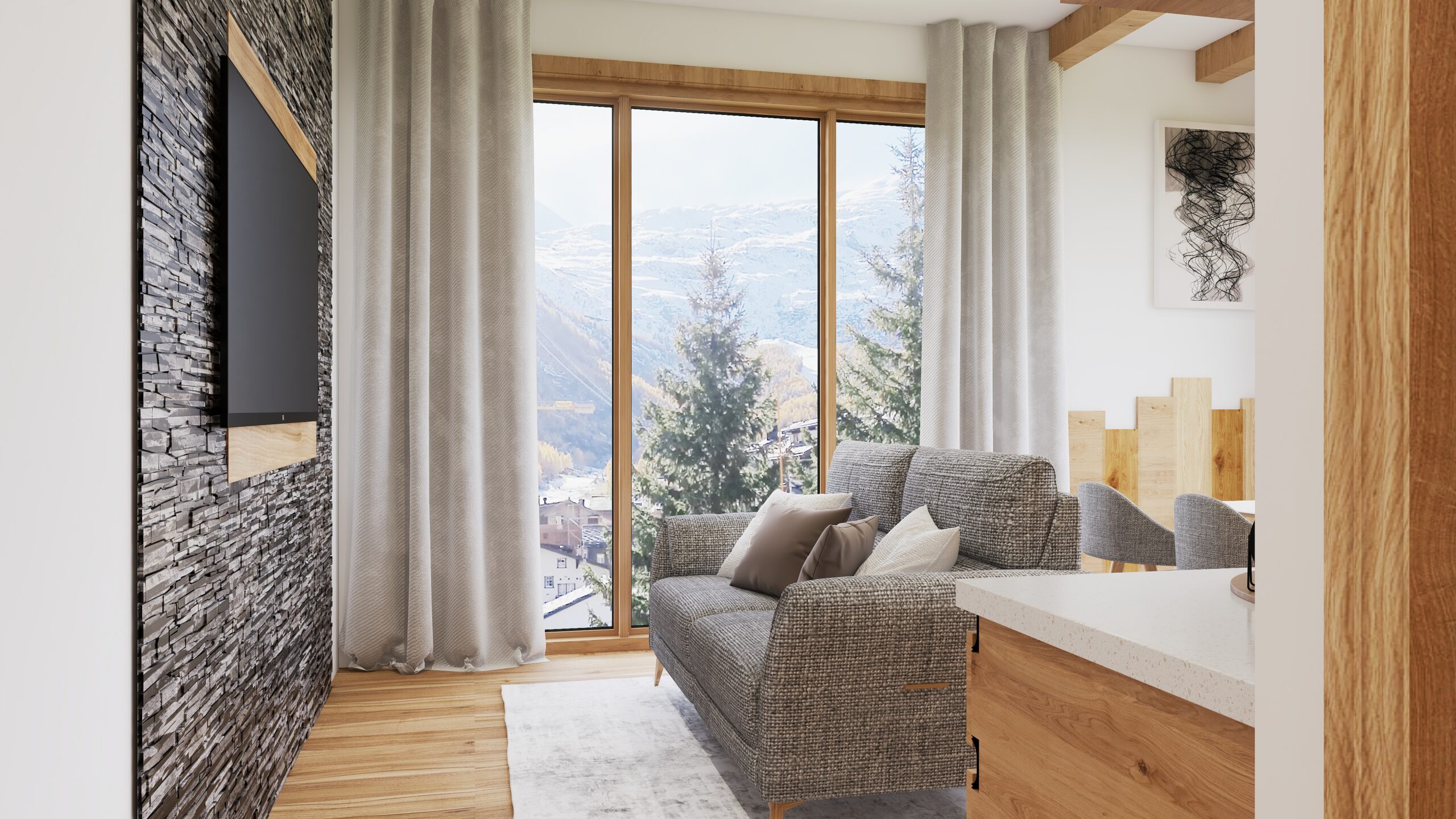 2Auf 54 m²* entfaltet sich ein Wohngefühl, das nicht nur einrichtet, sondern umarmt. Der offene Wohnbereich mit Essplatz und maßgeschneiderter Küchenzeile wirkt großzügig und hell, jedes Detail ruhig und bewusst gesetzt. Nichts drängt, alles fließt. Das separate Schlafzimmer wird zum persönlichen Rückzugsort: leise, weich, geborgen. Ein Ort, an dem man sich nach einem aktiven Tag in der Bergwelt in die Kissen sinken lässt und spürt, wie jeder Muskel loslässt. Das großzügige Badezimmer schafft mit hochwertigem Design und angenehmer Beleuchtung ein Gefühl von Spa-Intimität - ein Raum, der morgens belebt und abends beruhigt.
